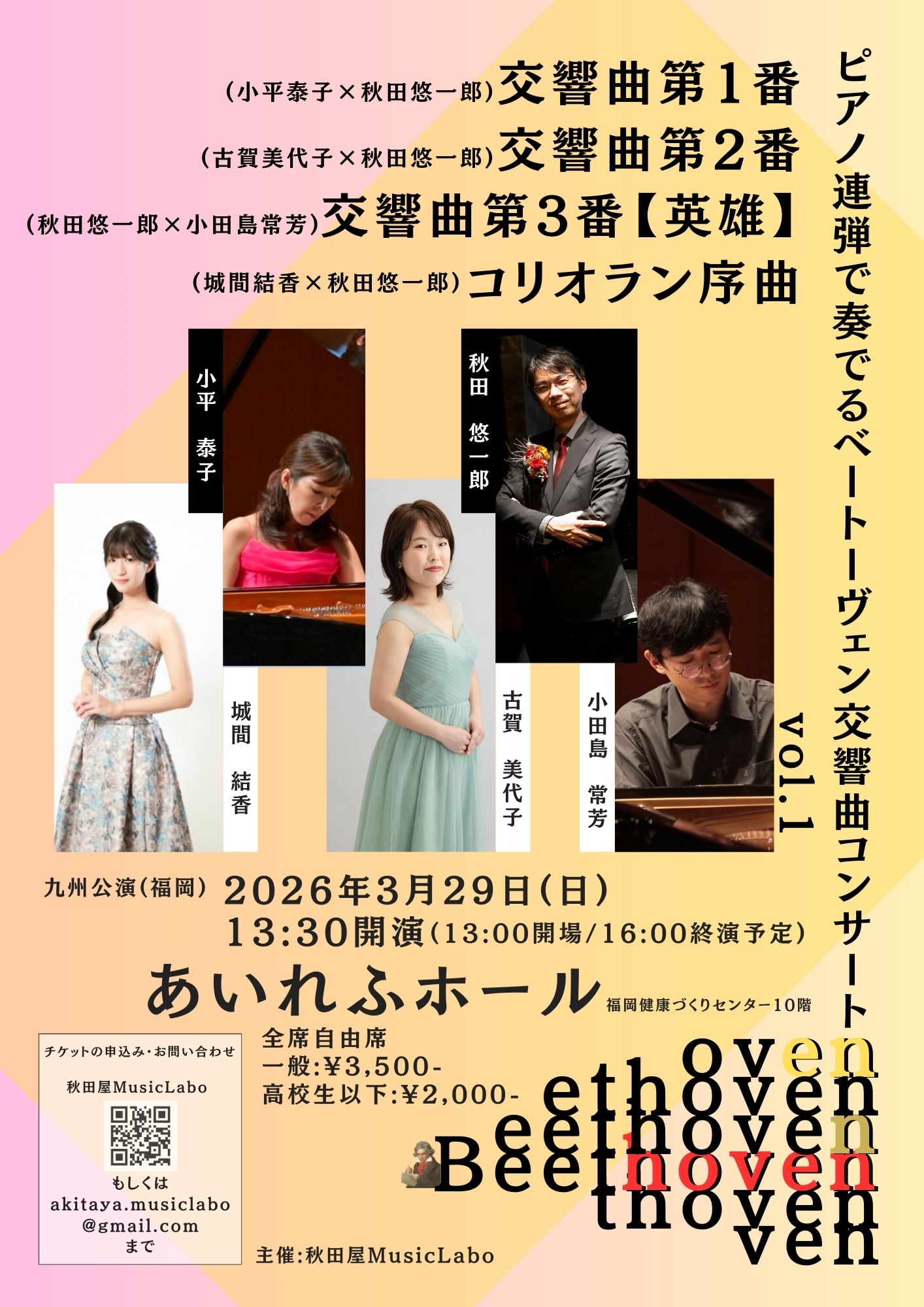【2025/3/29高校生以下チケット】ピアノ連弾で奏でるベートーヴェン交響曲コンサートvol.1(福岡)