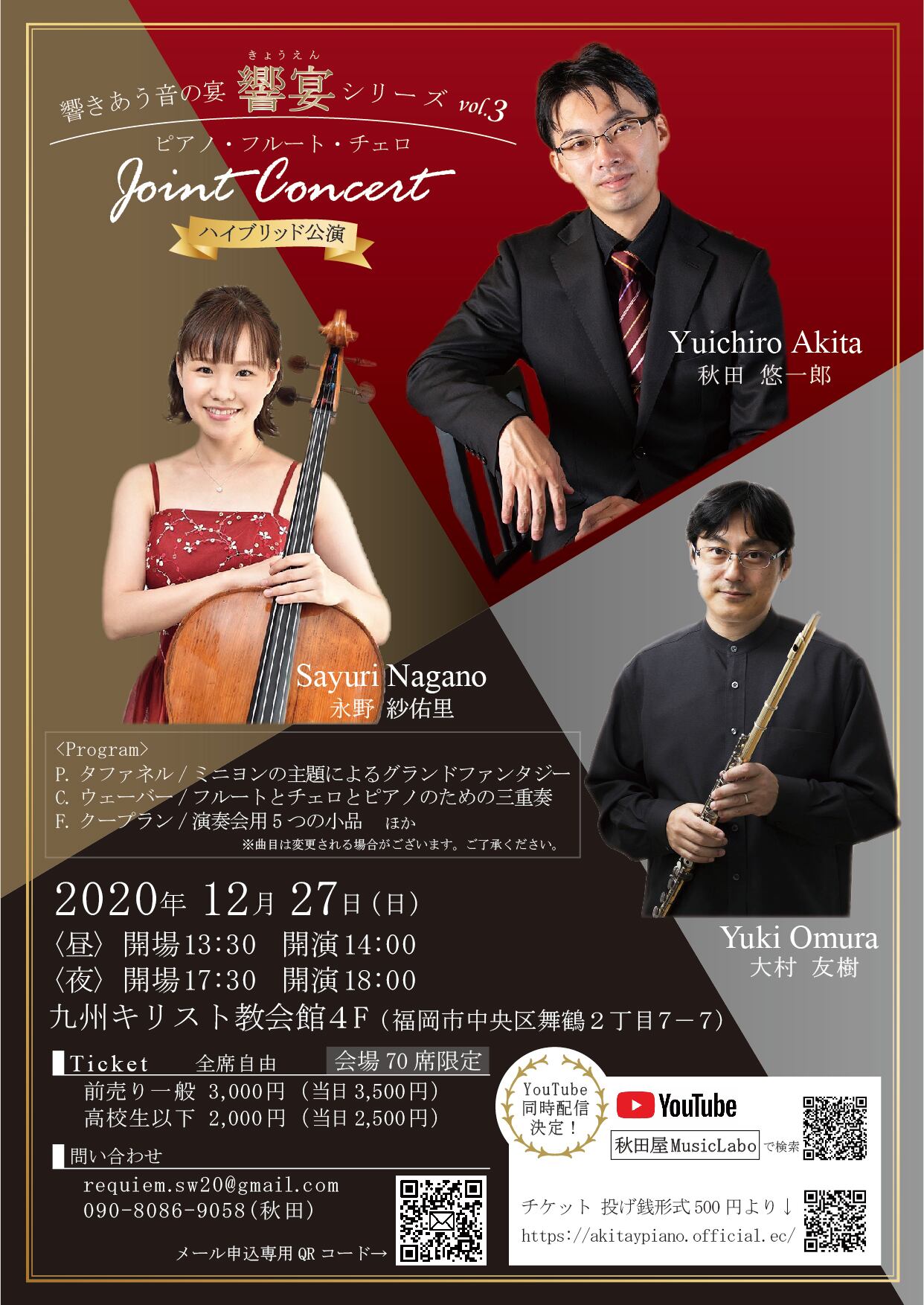 【終了】500円~[2020/12/27“響宴vol.3”九州キリスト教会館]オンライン配信用チケット(秋田悠一郎/大村友樹/永野紗佑里)